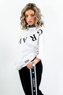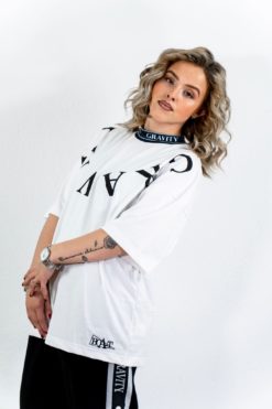 Details: 100% Baumwolle, 180gsm (dicke) aber trotzdem weich, Oversize Schnitt an der Schulter, elastischer Kragen mit Gravity Print, Gravity Print auf der Brust, Logo unten Links an der Hüfte